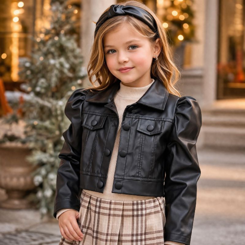 Jaqueta Infantil Couro Ecológico Menina Manga Princesa Botão Forrado Moda Blogueirinha 2 ao 10