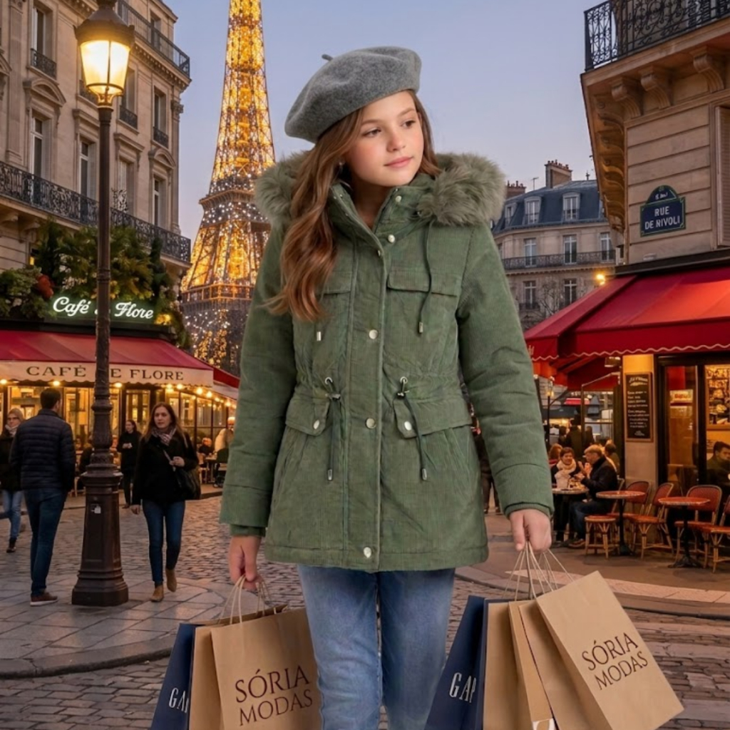 O Casaco Perfeito para os Dias Gelados: Parka Infantil Prepare o guarda-roupa dos pequenos para o inverno com a nossa Parka Peluciada. Unimos o design clássico das parkas com o máximo de isolamento térmico, garantindo que a diversão não pare, mesmo nos dias mais frios. O que torna nossa Parka especial? Aconchego Interno: O corpo do casaco é forrado com material peluciado de toque macio. (Observação: Mangas sem forro para garantir agilidade e conforto nos movimentos). Proteção Extra: Capuz com acabamento em pelos que barra o vento e protege as orelhas e o pescoço. Design Inteligente: Fechamento frontal reforçado e bolsos reais para aquecer as mãos ou guardar pequenos tesouros. Versatilidade: Corte moderno que permite usar blusas de lã ou moletons por baixo sem apertar. Composição: 100% Poliester Medidas : 8 Anos-Busto:80cm Manga:48cm Comprimento:55cm 10 Anos-Busto:84cm Manga:53cm Comprimento:60cm 12 Anos-Busto:88cm Manga:56cm Comprimento:65cm 14 Anos-Busto:92cm Manga:60cm Comprimento:68cm 16 Anos-Busto:96cm Manga:64cm Comprimento:71cm
