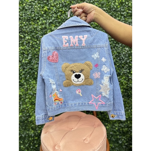 jaqueta jeans personalizada lilo e stitch customizada com nome