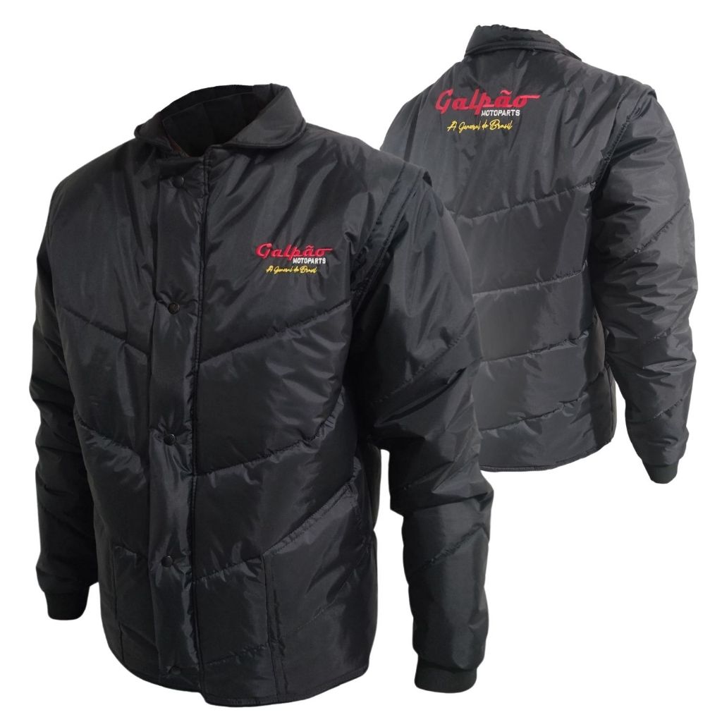 Jaqueta Motoqueiro Galpão Preta Motoboy Unissex ESPECIFICAÇÃO TÉCNICA: • Marca: Galpão Motoparts • Material: Poliéster • Modelo: Unissex (Feminino e Masculino) • Cor: Preto VANTAGENS: • Mangas removíveis • Forro interno térmico • Fechamento com zíper de alta durabilidade • 2 Bolsos externos e 1 interno com ótimo espaço CONTEÚDO EMBALAGEM: • 1 Jaqueta A Jaqueta Galpão foi desenvolvida especialmente para quem vive sobre duas rodas. Confeccionada com materiais resistentes e de alta qualidade, ela oferece conforto, segurança e durabilidade para enfrentar as exigências da rotina urbana. Ideal para motoboys, entregadores e motociclistas que buscam segurança e conforto sem abrir mão do visual. Garanta já a sua e rode com confiança em qualquer condição. !!!!!!!!!!!!!!! IMAGENS MERAMENTE ILUSTRATIVAS !!!!!!!!!!!!!!! SOBRE NOSSA EMPRESA: Somos uma organização com anos de experiência no mercado. Seja você um apaixonado por velocidade, um aventureiro de estrada ou um entusiasta da personalização, cumprimos a missão de fornecer peças e acessórios da mais alta qualidade para elevar sua experiência de pilotagem a um novo patamar. UTILIZE O CAMPO DE PERGUNTAS PARA TIRAR SUAS DÚVIDAS, e apenas confirme a compra em caso de CERTEZA de compatibilidade do produto! CÓDIGO: P: COD_18626 / M: COD_ 18627 / G: COD_18363 / GG: COD_18628.