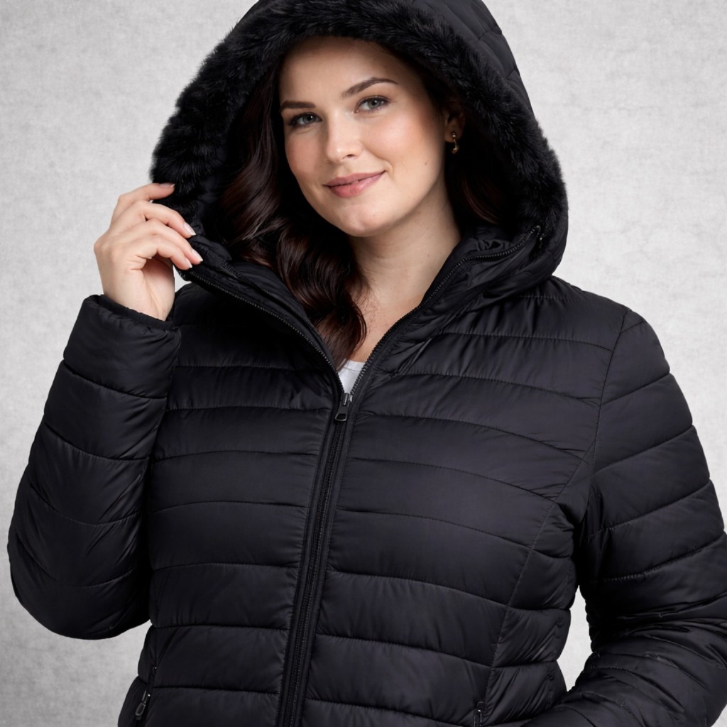 Jaqueta Puffer Bobojaco Feminina Plus Size Grande Impermeável Peluciada Capuz Removivel