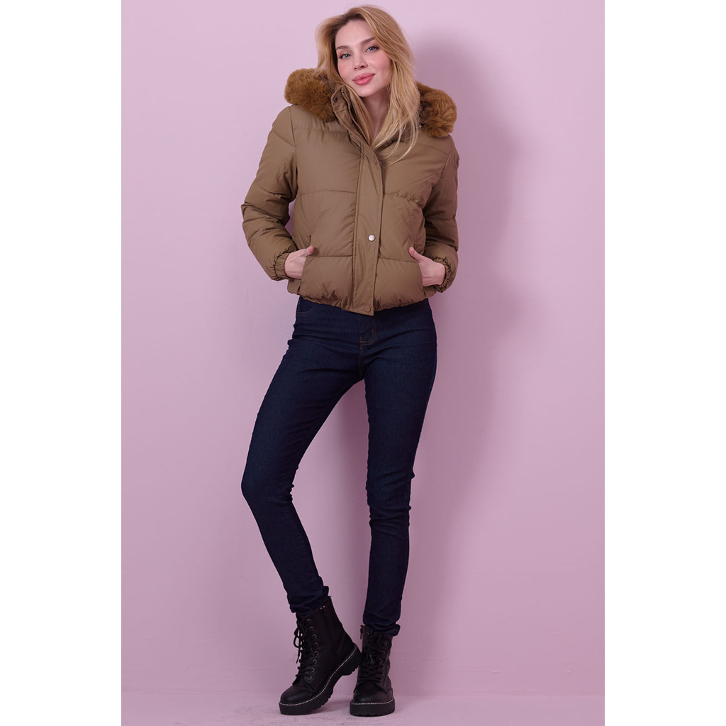 Jaqueta Puffer Com Capuz Planet Girls Caqui