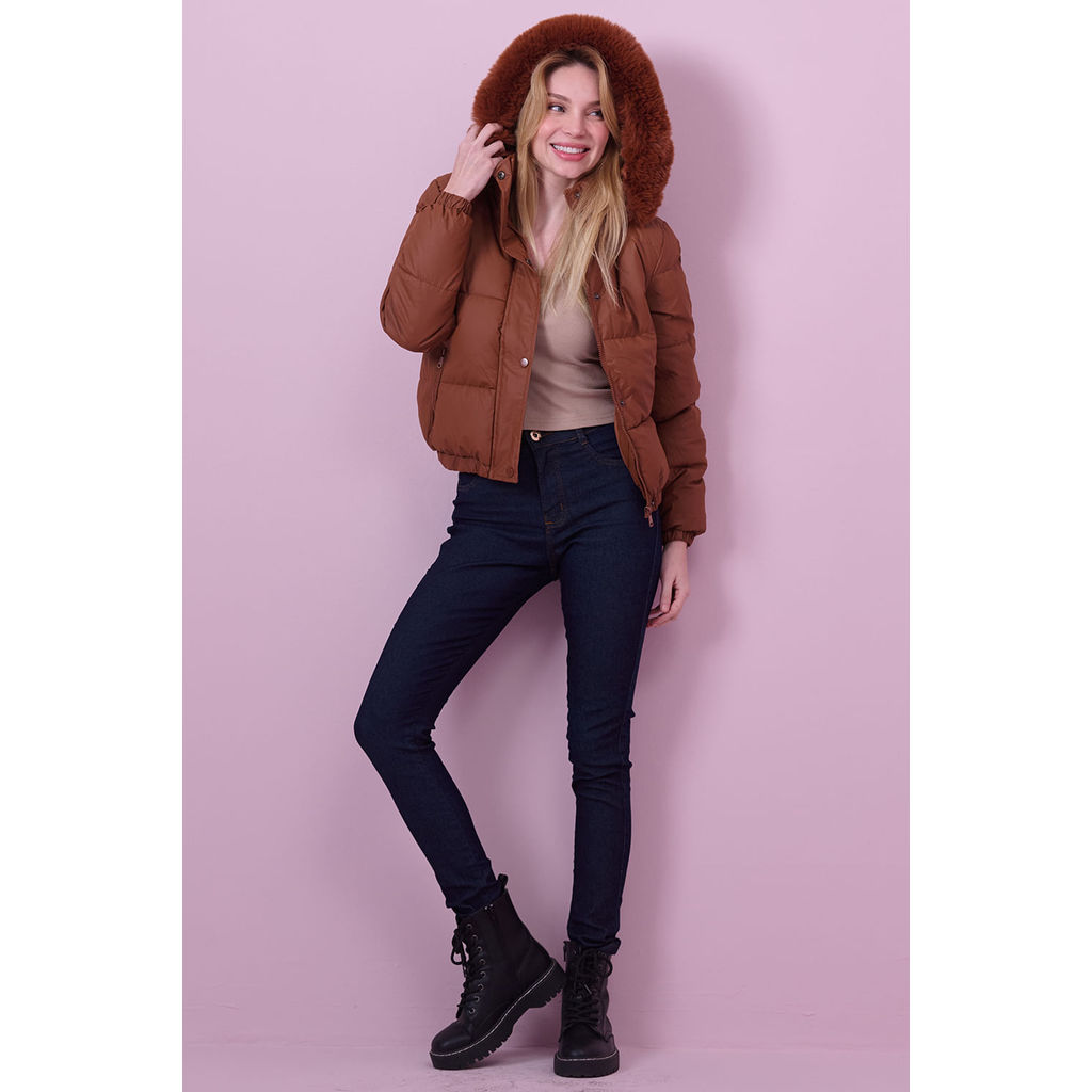 Jaqueta Puffer Com Capuz Planet Girls Caramelo