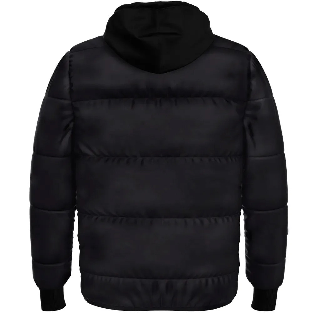 Jaqueta São Paulo Puffer com Gorro Masculina em nylon preta com manta acrílica interna em matelassê. Bolsos embutidos têm fechamento por zíper selado e puxador personalizado no peito e nas laterais. Logo em patch colado. A peça possui uma pegada casual, perfeito para uso diário e ir ao estádio. _ Características: - 100% Poliéster - Indicado para uso Casual - Todos os produtos a pronta entrega - Garantia: Contra defeito de fabricação Medidas Aproximadas: Largura x Altura - P (BR): 56 x 67 - M (BR): 59 x 69 - G (BR): 62 x 72 - GG (BR): 64 x 73