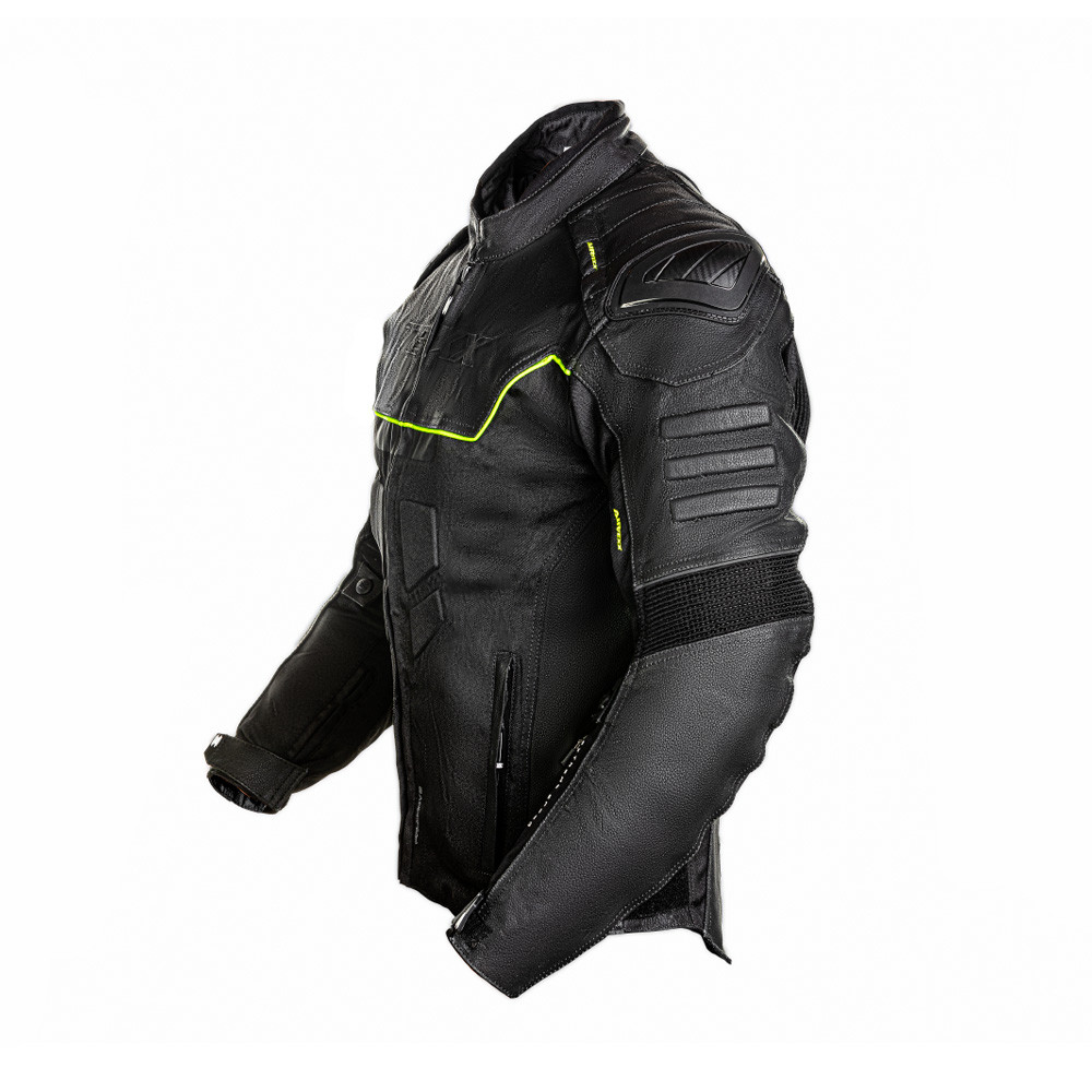 JAQUETA TEXX FALCON V2 Desenvolvida em couro e poliéster dando mais resistência ao produto e flexibilidade ao motociclista possui protetores nos pontos estratégicos e forro térmico integral removível. Seu design é esportivo acompanhando as tendências europeias. É a jaqueta para se usar o ano todo! DESCRIÇÃO DO PRODUTO • Jaqueta produzida em couro bovino de 1.1 mm e tecido poliéster 600D de alta resistência e conforto; • Forro térmico integral removível; • Corte ergonômico para auxiliar no caimento da jaqueta; • Design esportivo com detalhes em vermelho acompanhando as principais tendências europeias; • Tecido elástico sanfonado nos braços; • Sistema de ventilação AIRTEXX com entradas de ar na parte dos ombros e braços e saídas de ar na parte das costas; • Refletivos dark com a tecnologia SHINE TEXX proporcionando maior efetividade; • Protetores produzidos em Poliuretano nos ombros; • Sistema resistência a água STOPWATER; • Protetores em EVA na parte frontal e traseira; • Detalhamento em EVA nos braços; • Ajuste de punho em velcro e zíper com escrita interna; • Protetores em EVA nos ombros e cotovelos possuem a tecnologia EVOLUTION TEXX na parte interna e externa; • Elastano na parte interna dos braços e costas para melhor movimentação; • Fechador de corrida no zíper central 8VS; • Zíperes YKK;• Gola em elastano; • Corte traseiro alongado; • Forro térmico integral removível; • Bolso interno fixado na jaqueta; • Bolso moeda no braço; • Ajuste na cintura em velcro; • Loop de acoplagem para calças; • Saved cart – cartão com informações para contato em caso de emergência.