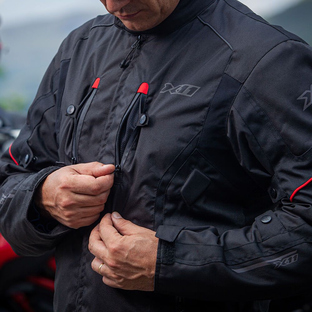 Jaqueta Iron 3 Masculina X11 Preta Vermelha Motoqueiro Impermeavel CÓDIGO: IRON3M. CONSTRUÇÃO Design limpo e agressivo; Tecido poliéster 300D, 450D, 600D e nas áreas de maior abrasão, 600D Jacguard; Membrana de impermeabilização; Fit Sport-touring. CONFORTO Gola em fleece e Neoprene; Forração interna leve e respirável, em mesh; Forração térmica removível com 2 bolsos; Painéis elásticos nas costas e cotovelo; Puxadores emborrachados nos zíperes principais; 2 bolsos externos com zíper; 2 bolsos internos, sendo um no peito; 2 entradas de ar frontais; 1 saída de ar traseira generosa; SEGURANÇA Proteções internas removíveis, nos ombros e cotovelos, com C.E.; Proteção interna removível em EVA nas costas; Relevos em EVA frontais e traseiros; Detalhes refletivos no pescoço, ombros, peito, braços e costas; 3 alças para conexão com calças; AJUSTES Gola regulável com ajuste de 2 níveis; Botão para fixação da aba da gola; Ajuste de cintura em velcro; Ajuste com botões nos bíceps e antebraço; Manga em neoprene com ajuste em velcro; EXTRAS Zíper frontal reforçado; Canaleta impermeável sob zíper frontal. Design contemporâneo, funcionalidade e resistência à abrasão, para encarar estradas e ruas em diversas condições. Tecidos tecnológicos e refletividade com o DNA da marca à risca. !!!!!!!!!!!!!!! FOTOS MERAMENTE ILUSTRATIVAS !!!!!!!!!!!!!!! SOBRE NOSSA EMPRESA: Somos uma organização com anos de experiência no mercado. Seja você um apaixonado por velocidade, um aventureiro de estrada ou um entusiasta da personalização, cumprimos a missão de fornecer peças e acessórios da mais alta qualidade para elevar sua experiência de pilotagem a um novo patamar. UTILIZE O CAMPO DE PERGUNTAS PARA TIRAR SUAS DÚVIDAS, e apenas confirme a compra em caso de CERTEZA de compatibilidade do produto!