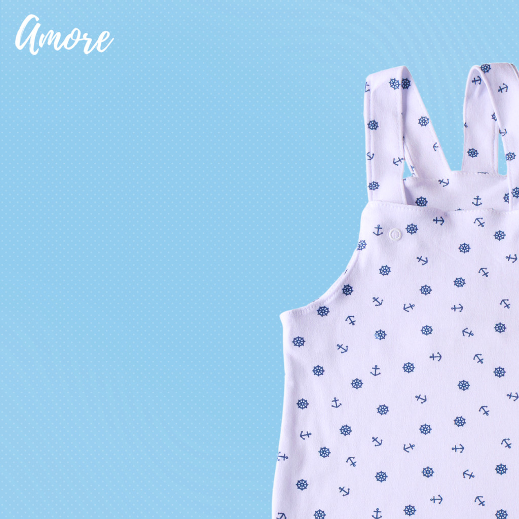 Jardineira Curta para Bebê Marinheiro e Body Azul Marinho - Suedine 100% Algodão