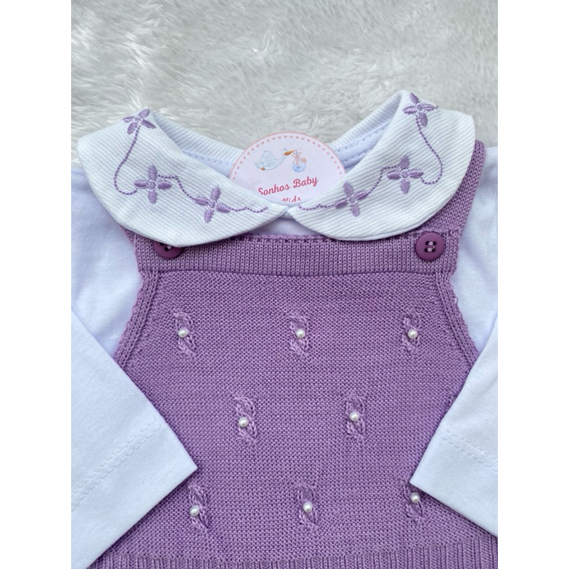 jardineira e body tricô anna bebê menina