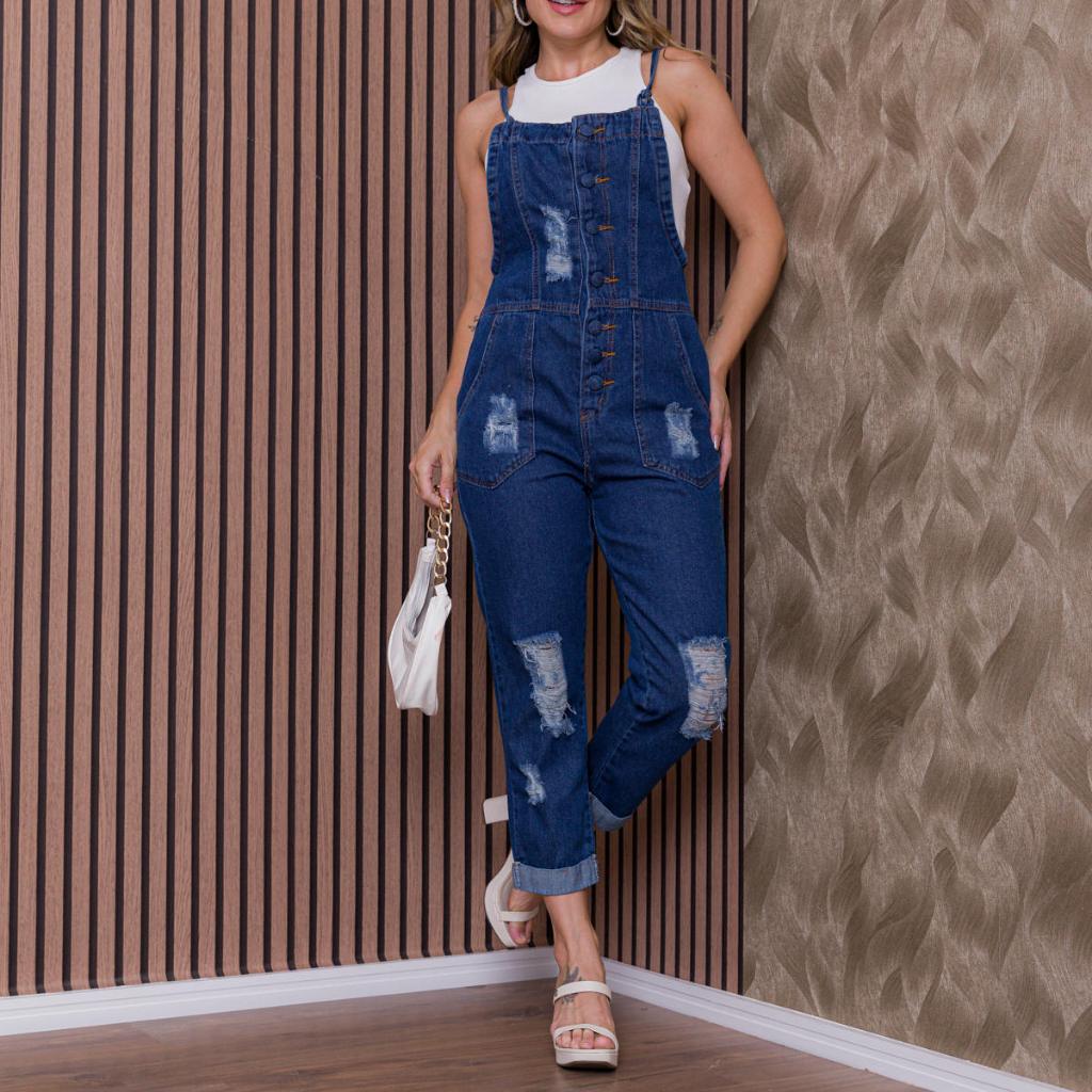 Jardineira Jeans Feminina Slim Com Botões na pantacour 11/12#