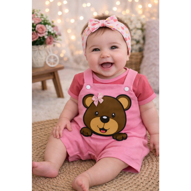 Jardineira Macacão Bebê Menina Recém-Nascida Fofo com Desenhos Estampados Roupinha Estilosa