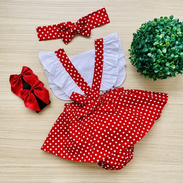 Jardineira Minnie Baby Vermelho Menina Bebe + faixinha de cabelo