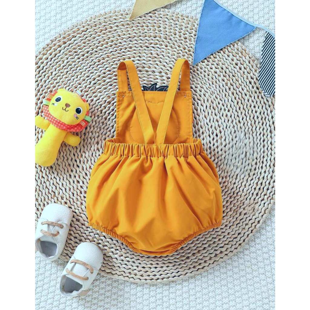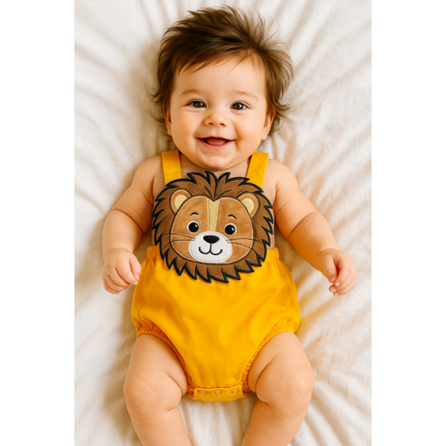 Tamanho P Veste de 0 a 3 meses. Jardineira mede 36cm do alça ao troca fralda. Prepare-se para rugidos de fofura com esta jardineira infantil amarelo-ouro com aplicação de leão! Confeccionada em tecido tricoline, leve e macio, ela garante conforto e respirabilidade para a pele delicada do bebê, com alças práticas, elástico nas perninhas e botões de pressão no entrepernas, essa peça é perfeita para facilitar o dia a dia.