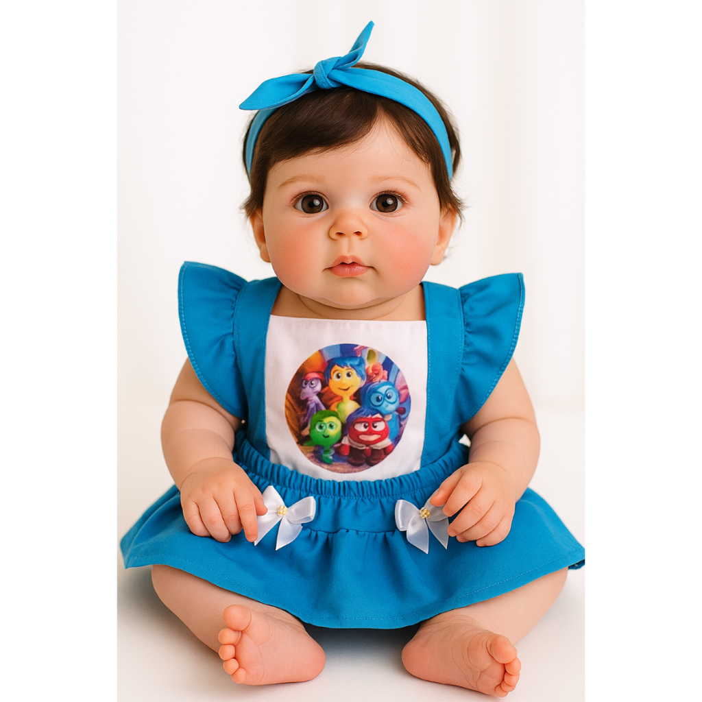 Jardineira Romper Body Bebê Menina 3 á 6 Meses Mesversário c/ Tiara Cabelo Moana Divertidamente