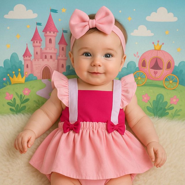 Jardineira Romper Saia Conjunto Roupa Bebe Para Menina Fantasia Mesversario Princesas Disney Aurora