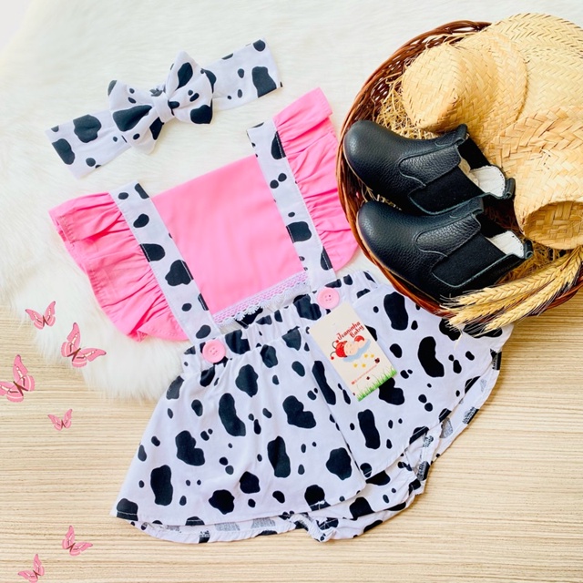 Jardineira Saia Romper Fazendinha Vaquinha Bezerrinha Romper Body
