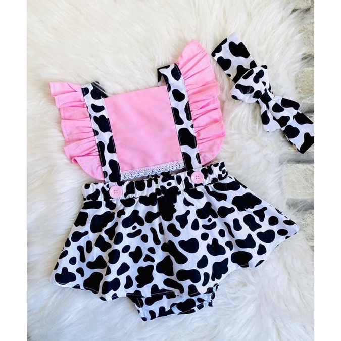 Jardineira Saia Romper Vaquinha Fazendinha Bezerrinha (Não acompanha meia)