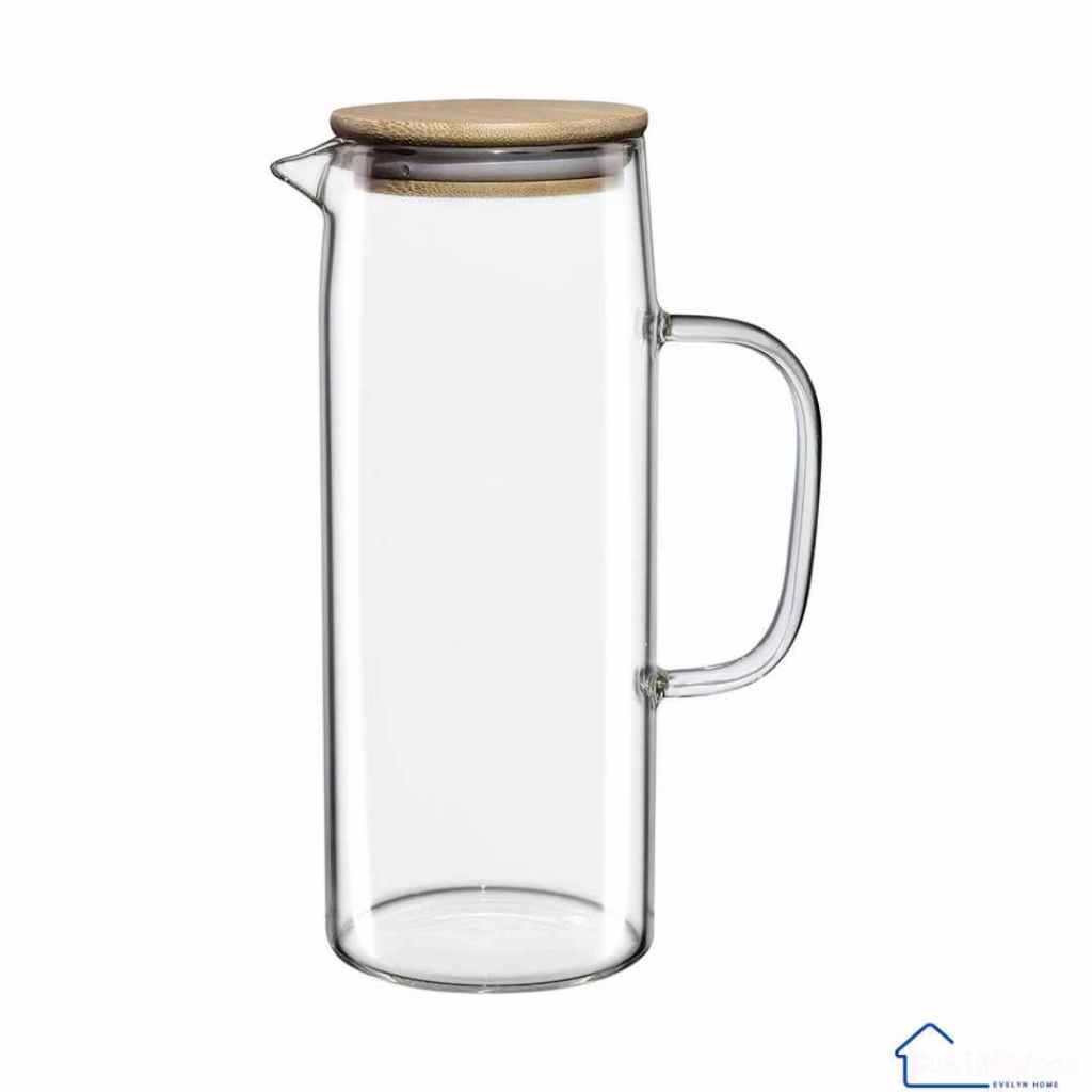 Jarra 1,2L Para Servir Água Suco Chá E Refrescos No Dia A Dia Escritorio Mesa Posta Com Tampa Bambu De Vidro Resistente