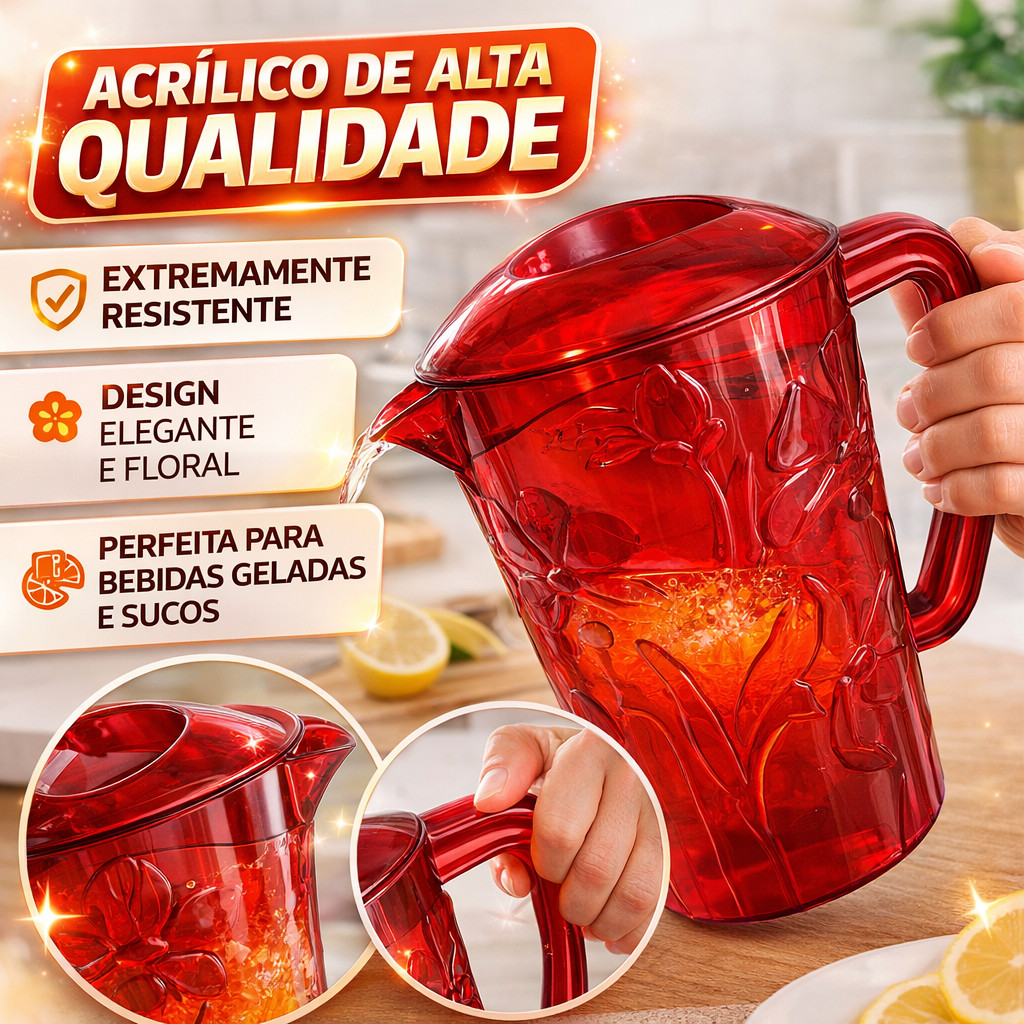 Jarra Acrílica 2L Transparente 3 Cores Tampa Prática Resistente Servir Suco Água Bebidas Cozinha vale a pena?