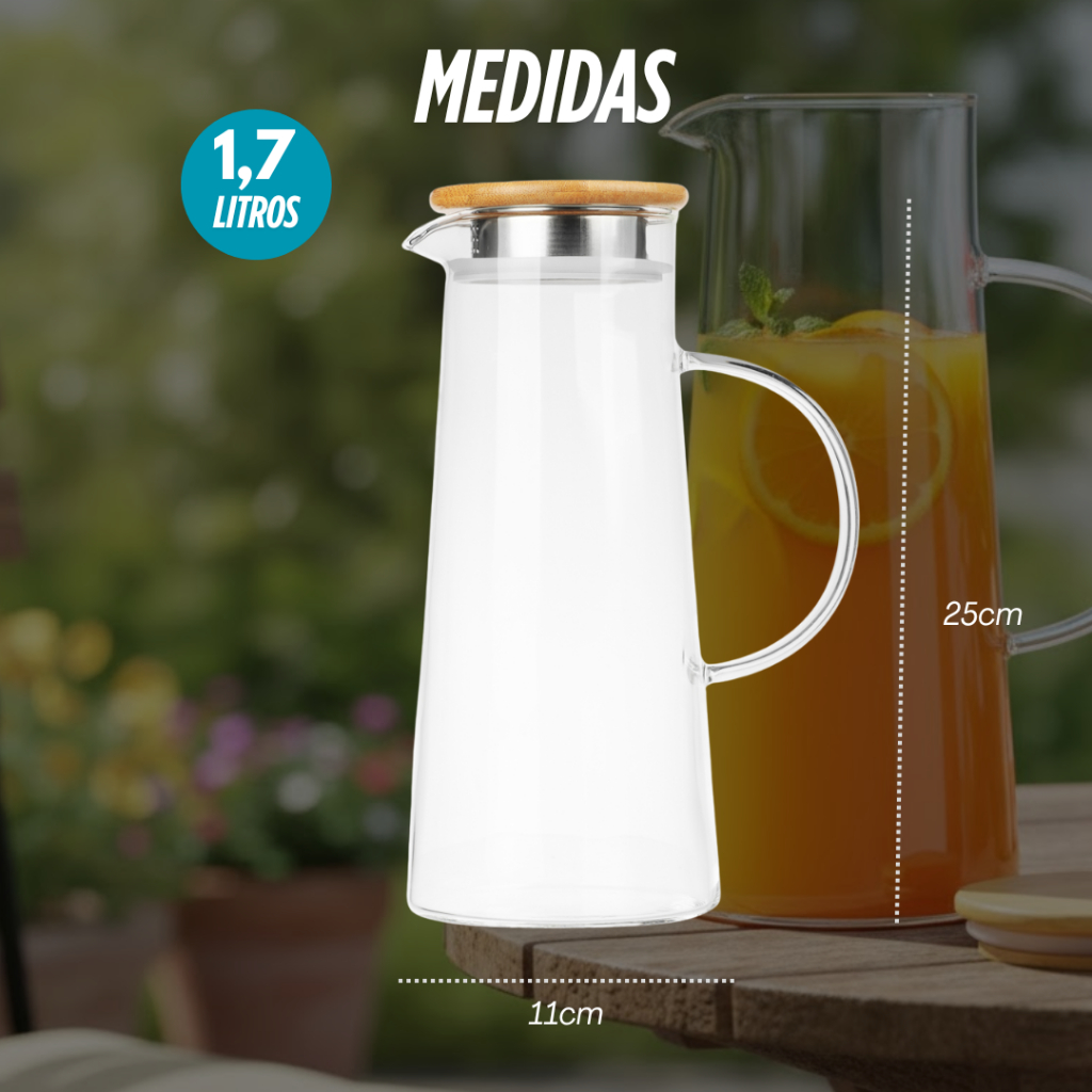 Jarra De Vidro 1,7 Litros Borossilicato Tampa Em Bambu Ergonomica Resistente a o Calor Com Bico Inteligente