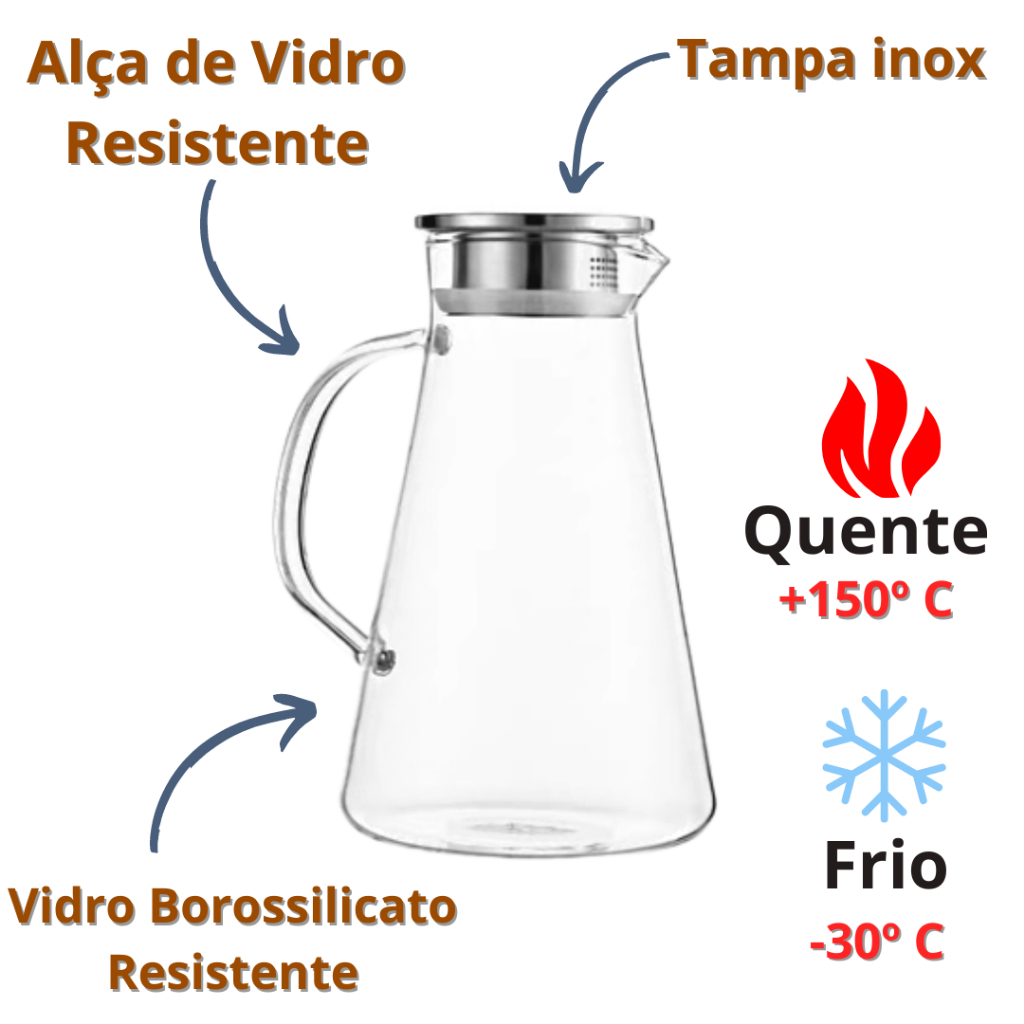 Jarra Em Vidro Borossilicato Resistente Com Tampa Inox 1,8 L
