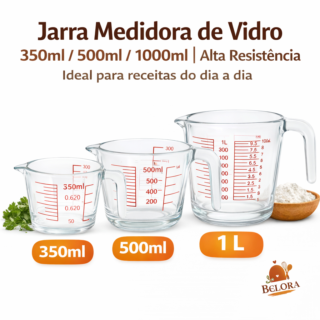 Jarra Medidora De Vidro Opção 350ml 500ml 1000ml com Alça Para Receitas Resistente Vai no Microondas