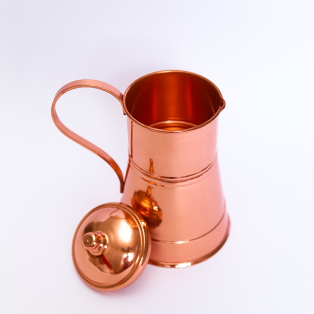 O Artesanato em Cobre está localizado em Formiga, interior de Minas Gerais, e desde 2013 vende peças em cobre para todo o Brasil, compre agora! Descrição e Detalhes Conservação Parte externa: limpar com detergente e o lado mais macio da bucha. Parte interna: limar com limão e sal. Não utilizar produtos químicos e nenhuma superfície áspera. Medidas - Altura: 17,5 cm; - Diâmetro: 9,5 cm; - Diâmetro fundo: 13 cm; - Capacidade: 1,3 L. Composição - COBRE PURO Quantidade de Peças - 1 Jarra com tampa de Cobre - PRODUTO ARTESANAL FABRICAÇÃO PRÓPRIA - GARANTIA TOTAL CONTRA DEFEITOS NA FABRICAÇÃO E TRANSPORTE