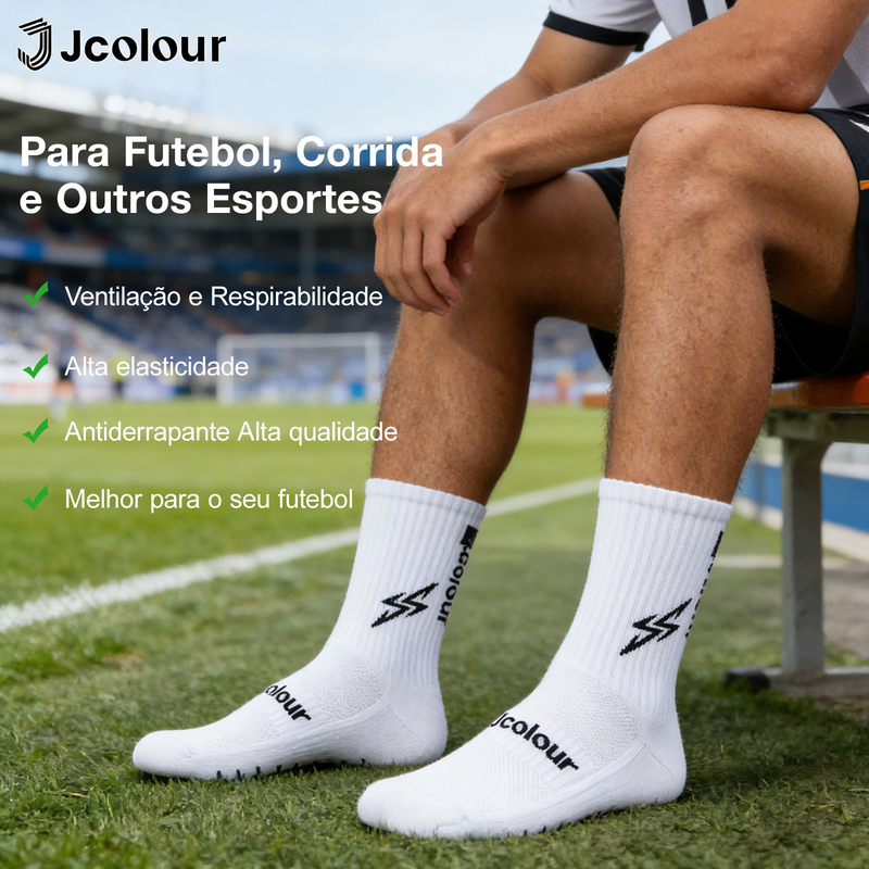 Jcolour Kit 6 Meias de Futebol tubo médio Thundergrip Esportivas Corrida Antiderrapante Futebol