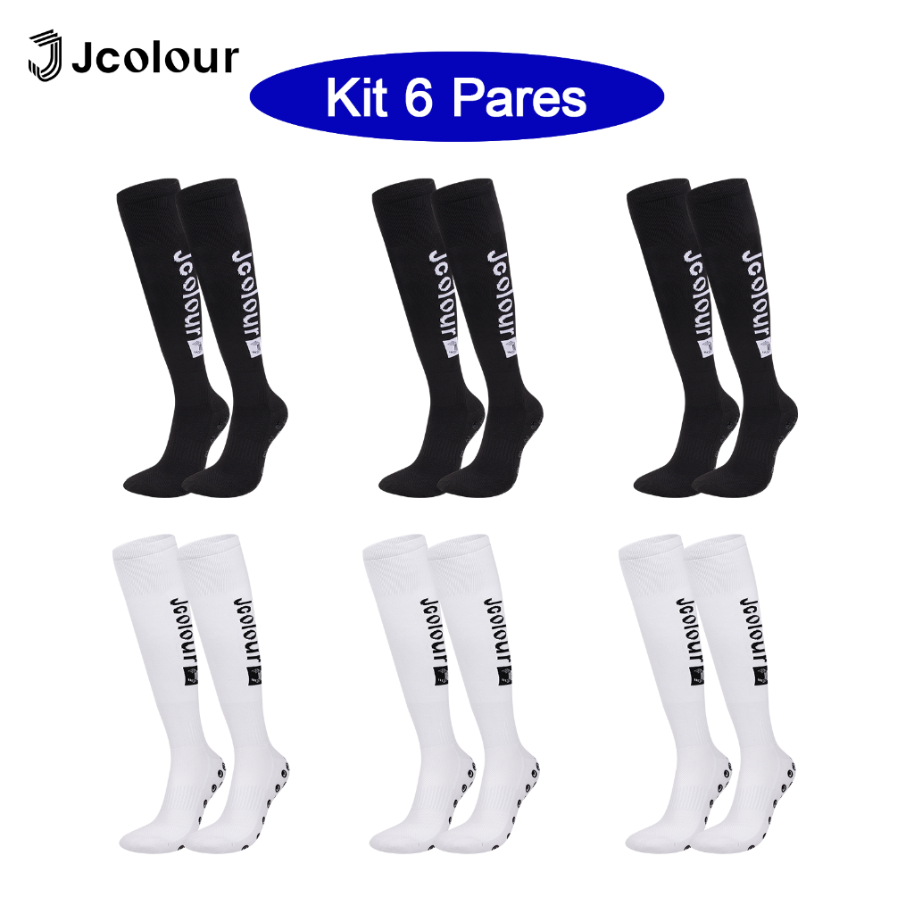 Jcolour Novo Kit 6 Meião de Futebol Antiderrapante Esportiva Respirável Longas Alta Qualidade