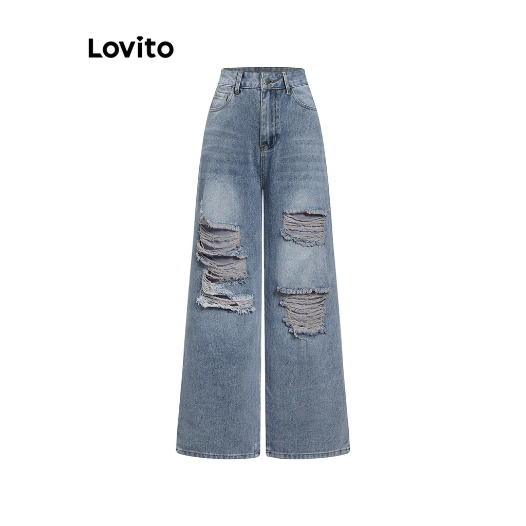 Jeans feminino casual rasgado Lovito para mulheres L105MD065