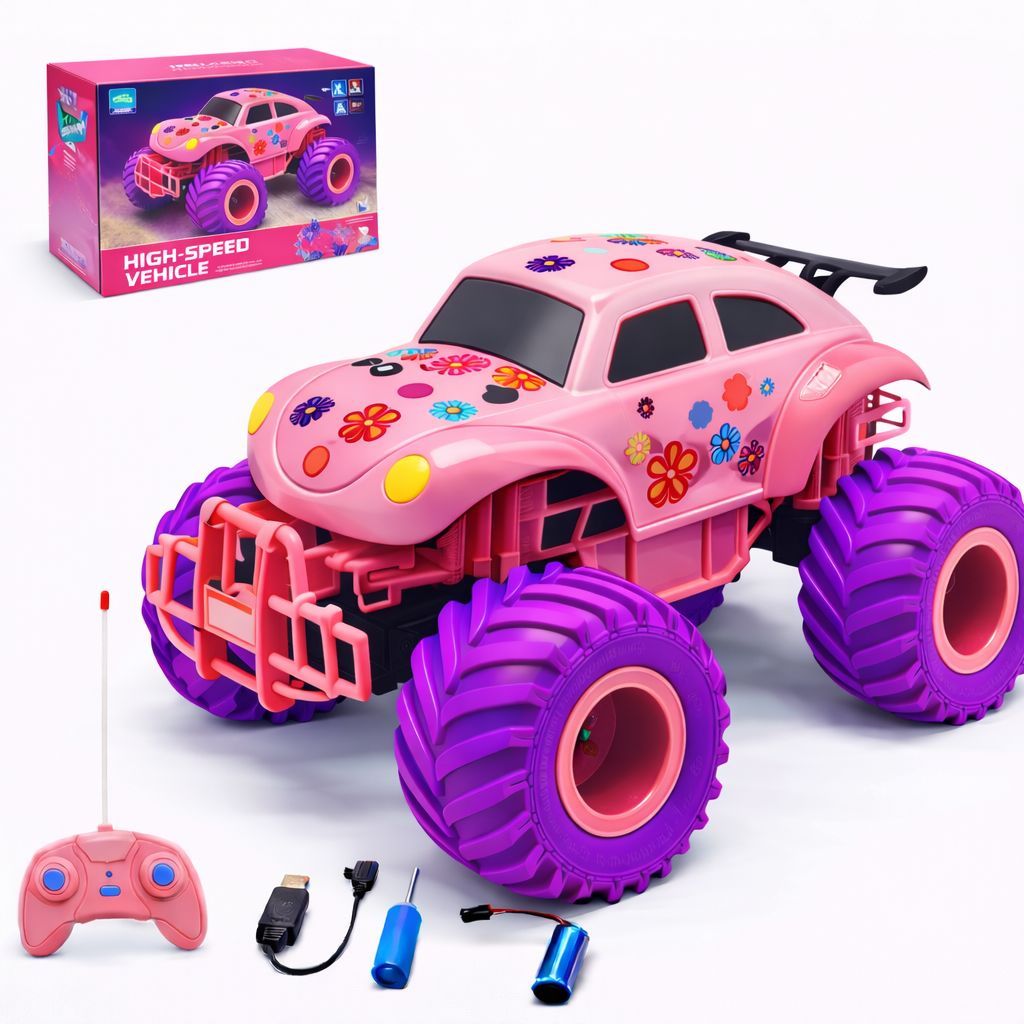 Jeep De Controle Remoto Brinquedo Off-road Rosa Alta Velocidade Roda Grande Para Terra Caminhonete