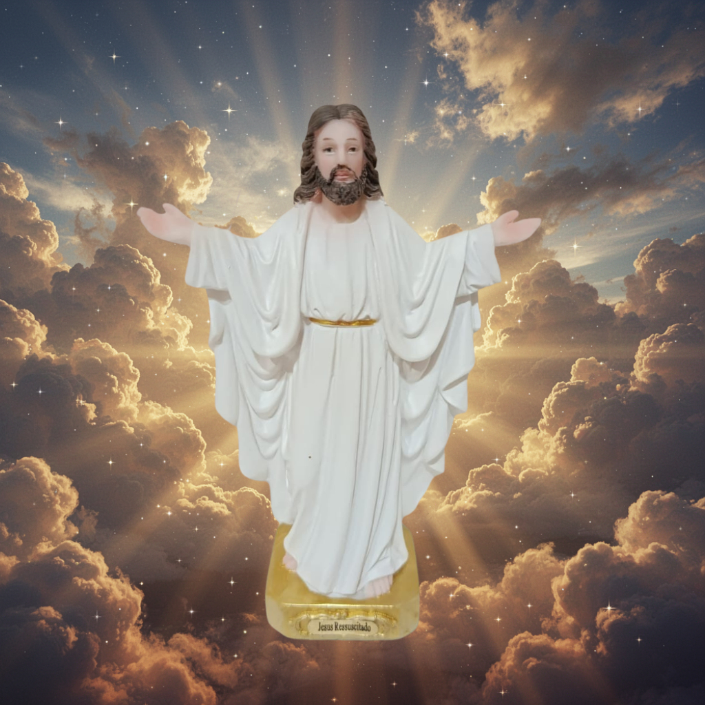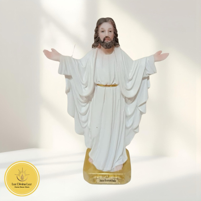 Imagem de Jesus Ressuscitado Resina Importada 10/15cm de Mesa - Resina Importada Jesus Ressuscitado – O Triunfo da Vida e da Esperança A imagem de Jesus Ressuscitado simboliza a vitória de Cristo sobre a morte, trazendo a mensagem de renovação, fé e salvação. Esta peça é ideal para expressar a esperança da ressurreição e a força da fé em Cristo. — VENDEMOS NO ATACADO — ⸻ 🕊️ Características do produto: • Material: Resina de alta qualidade, com pintura artesanal • Tamanho disponível: 10 cm e 15cm • Acabamento: Detalhes realistas em Cristo, com roupagens brancas e base dourada • Uso: Decoração religiosa, altar, presente espiritual ⸻ 💡 Indicado para: ✔️ Devotos de Jesus Ressuscitado ✔️ Oração pela renovação espiritual e fé ✔️ Decoração de altares, capelas, igrejas e lares ✔️ Presente religioso cheio de significado ⸻ 🌟 Uma peça de grande simbolismo, perfeita para quem deseja refletir sobre a ressurreição de Cristo e levar a fé para o seu ambiente. 🙏 Garanta já a sua imagem e receba em casa com toda segurança e cuidado!
