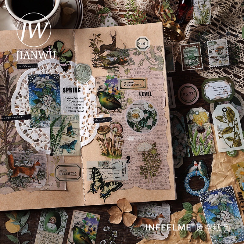 JIANWU 20 Folhas Vintage Art PET À Prova D'água Papelaria Adesivo Livro De Adesivos DIY Diário De Raspagem Material Kawaii
