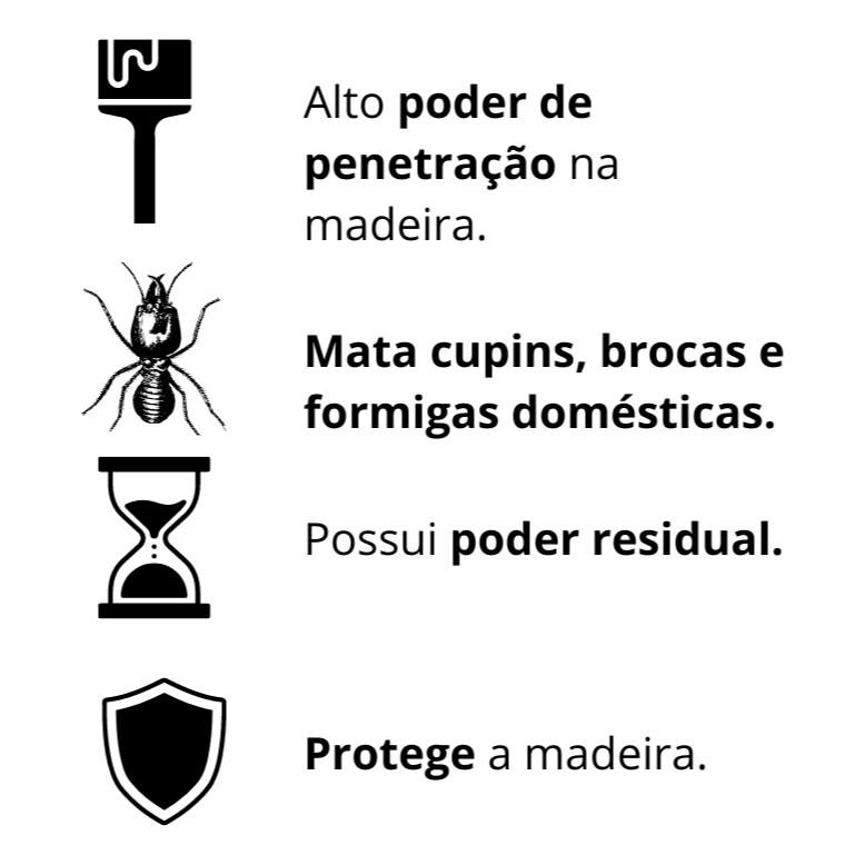 CARACTERÍSTICAS Elimine de maneira eficaz, rápida, prática e segura os cupins de seus móveis e as formigas domésticas de sua casa. Aplique o Mata Cupim (Veneno / Remédio) Spray da JIMO! O cupinicida da JIMO é um produto que está no mercado desde 1956, eficaz e de tradição o Mata Cupins da JIMO é fácil de aplicar! Muito eficaz contra os cupins em qualquer tipo de madeira e focos localizados de formigas domésticas! Aerossol residual de ação prolongada, o Mata Cupim da JIMO vai livrar você deste inconveniente problema. Completas instruções de uso e segurança no verso da embalagem do produto. Produto Nacional com a qualidade JIMO QUÍMICA INDUSTRIAL. Embalagem Spray : 400ml