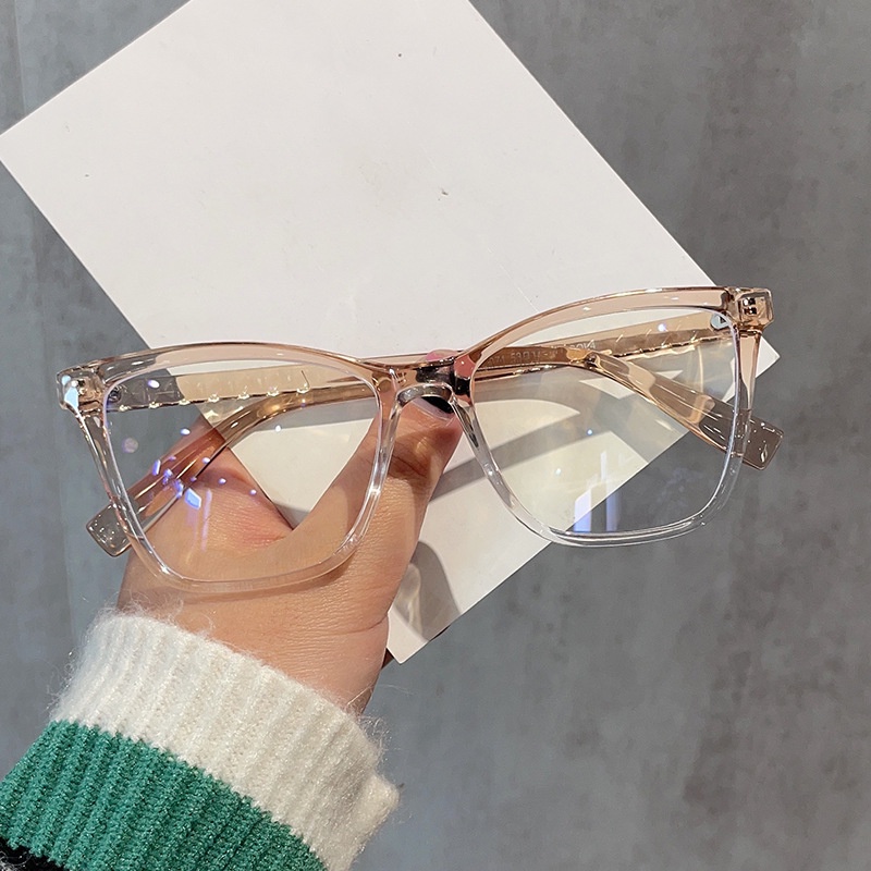 (JIUERBA) Moldura Quadrada De Tamanho Superior Gradiente De Cor Óculos Coreanos Fashion Cat Eye Anti Blue Light Eyeglasses