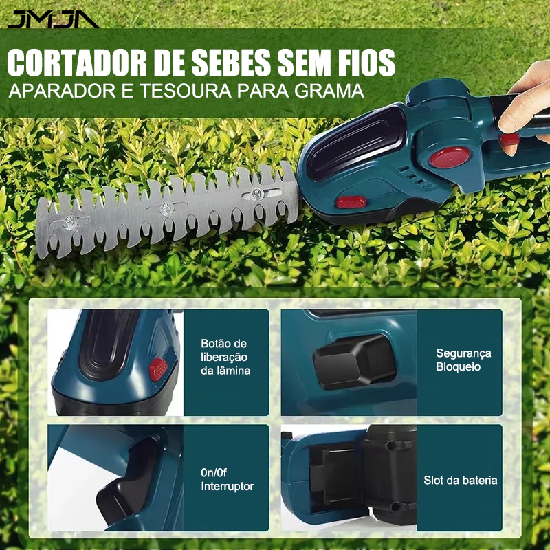 JMJN Cortador de Grama 24V 3 em 1 Sem Fio com 2 Baterias Aparador de Cerca Viva e Tosquiadeira Recarregável para Jardim