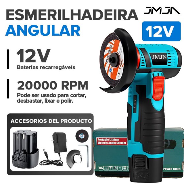 JMJN Mini Esmerilhadeira Angular 12V Sem Fio Recarregável com 2 Baterias Maleta Completa de Ferramentas
