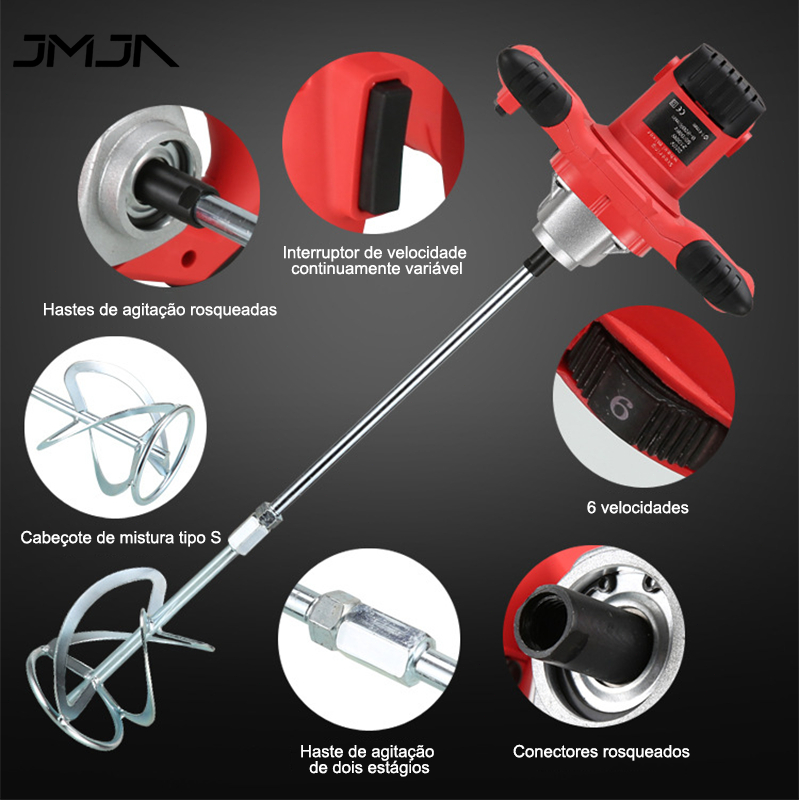 JMJN Misturador Elétrico Profissional 2100W 2 Velocidades de Argamassa Tinta e Gesso com Hélice Escovas e Acessórios