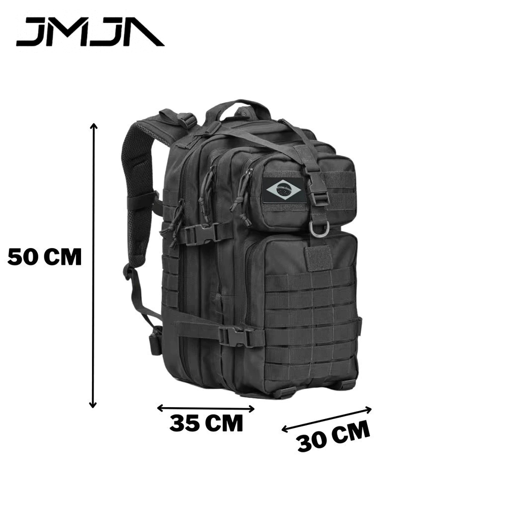 Mochila Tática Militar 55 Litros - A Prova D'Água e Super Resistente! Descrição: Procurando uma mochila que aguente o tranco do seu dia a dia e das suas aventuras? A Mochila Tática Militar 55 Litros é a escolha perfeita! Feita com materiais de alta qualidade, usados em equipamentos militares, ela oferece resistência, durabilidade e conforto para qualquer situação. Características Principais: ✅ Resistência e Durabilidade: Fabricada com materiais de alta qualidade, usados em equipamentos militares. A prova d'água, protegendo seus pertences contra chuva e umidade. ✅ Conforto Acolchoado: Traseira e alças acolchoadas para maior conforto durante o uso prolongado. Alça de tórax e abdômen ajustáveis, que distribuem o peso e aliviam a carga nos ombros. ✅ Organização e Funcionalidade: 4 bolsos internos para manter seus itens organizados. Sistema MOLLE para acoplar módulos e acessórios adicionais. Velcro para colocar patches de identificação personalizados. ✅ Design Militar Moderno: Visual robusto e imponente, perfeito para uso no dia a dia ou em missões. Ideal para atividades ao ar livre, trekking, camping, viagens e muito mais. Especificações Técnicas: Capacidade: 55 litros. Dimensões: 50cm (altura) x 30cm (largura) x 3cm (profundidade). Peso: Leve e fácil de carregar.