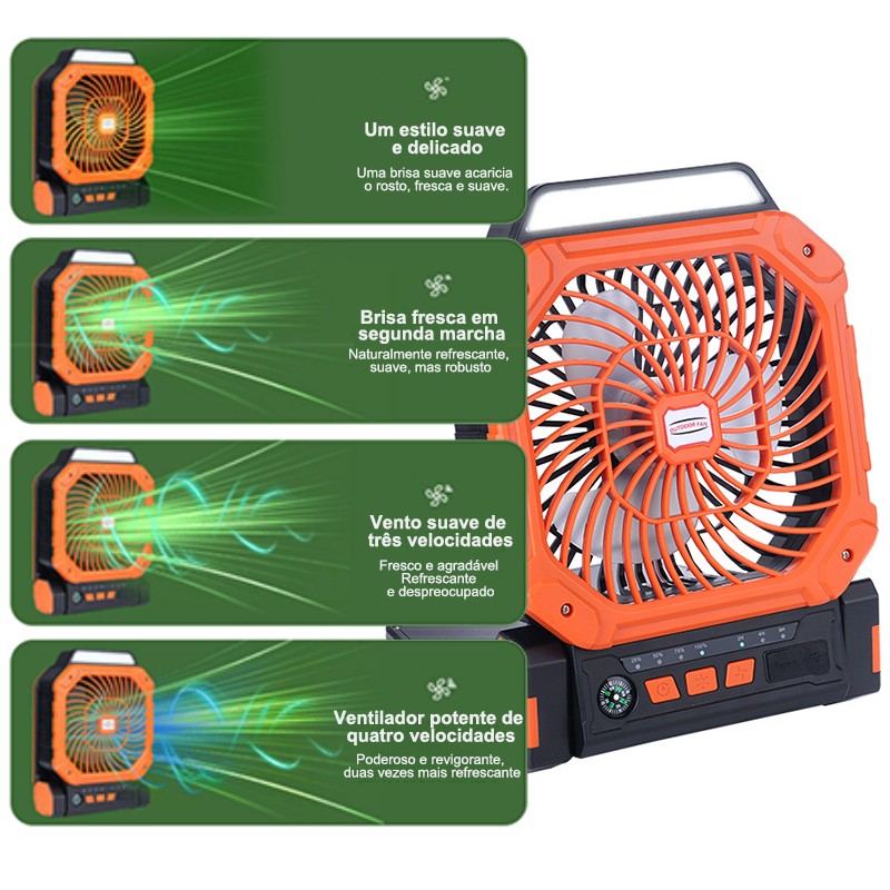 JMJN Ventilador Portátil com Recarga Solar e Power Bank - Fácil de Carregar, Ideal para Acampamentos e Viagens