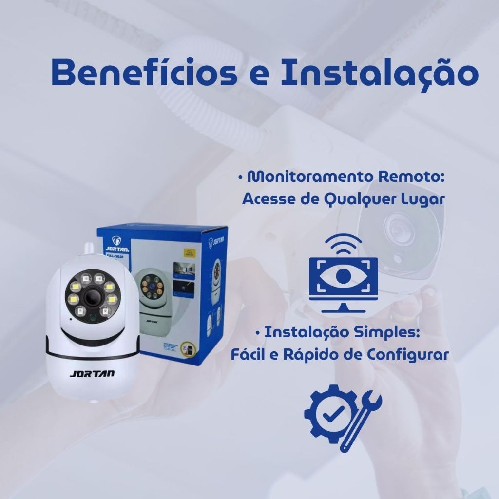 Características Principais: - Resolução Full HD 1080P: Imagens nítidas e detalhadas, proporcionando clareza tanto de dia quanto à noite. .- Rotação Completa: Capacidade de girar 360 graus horizontalmente e 110 graus verticalmente, cobrindo uma ampla área. - Detecção de Movimento: Alertas em tempo real enviados ao seu smartphone quando qualquer movimento é detectado. - Armazenamento Local: Slot para cartão MicroSD de até 128GB (cartão não incluído), permitindo o armazenamento de vídeos e imagens. - Compatibilidade: Funciona com sistemas iOS e Android através do aplicativo Yoosee. Especificações Técnicas: Resolução: Full HD 1080P Visão Noturna: Infravermelho, alcance de até 10 metros Rotação: 360° horizontal e 110° vertical Detecção de Movimento: Sim Armazenamento: Slot para cartão MicroSD de até 128GB (não incluso) Compatibilidade: iOS e Android Conexão: Wi-Fi Aplicativo: Yoosee Alimentação: Fonte de energia DC 12V Dimensões: 12,2 x 12,2 x 9,7 cm Peso: 500g