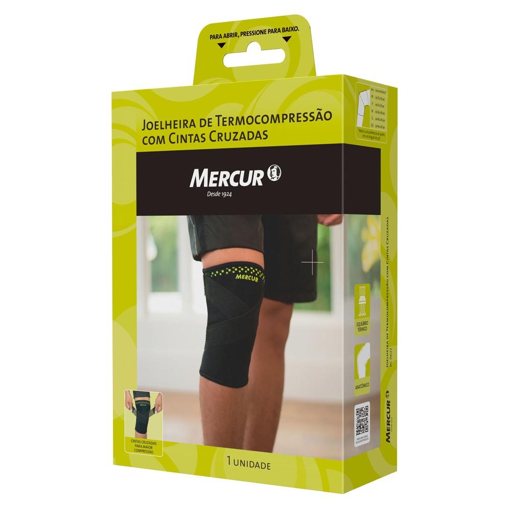 Joelheira Mercur de Termocompressão com Cintas Cruzadas Preto Tamanho M 1 Unidade