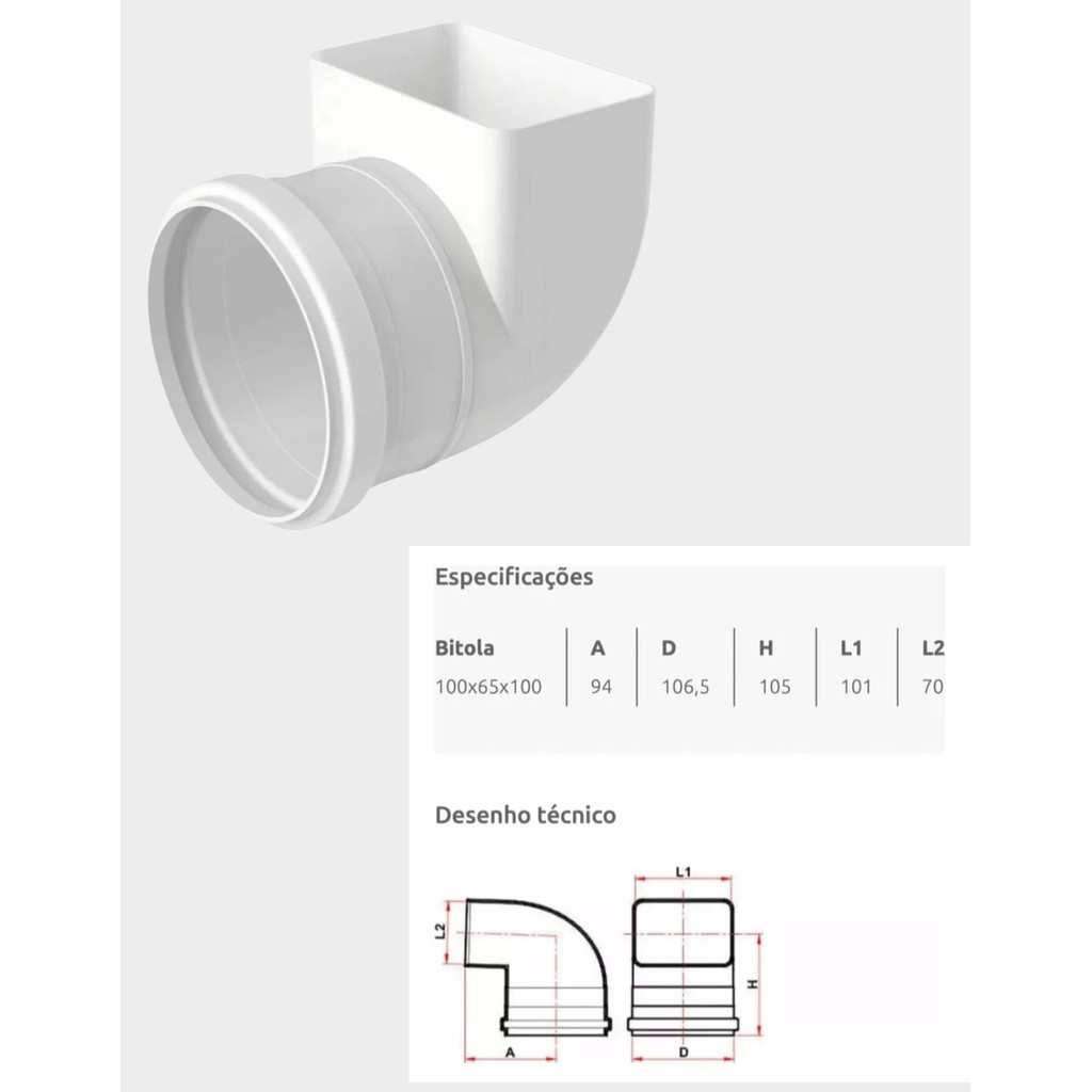 Joelho Cotovelo Para Calha 100mm X 65mm Transição Retangular