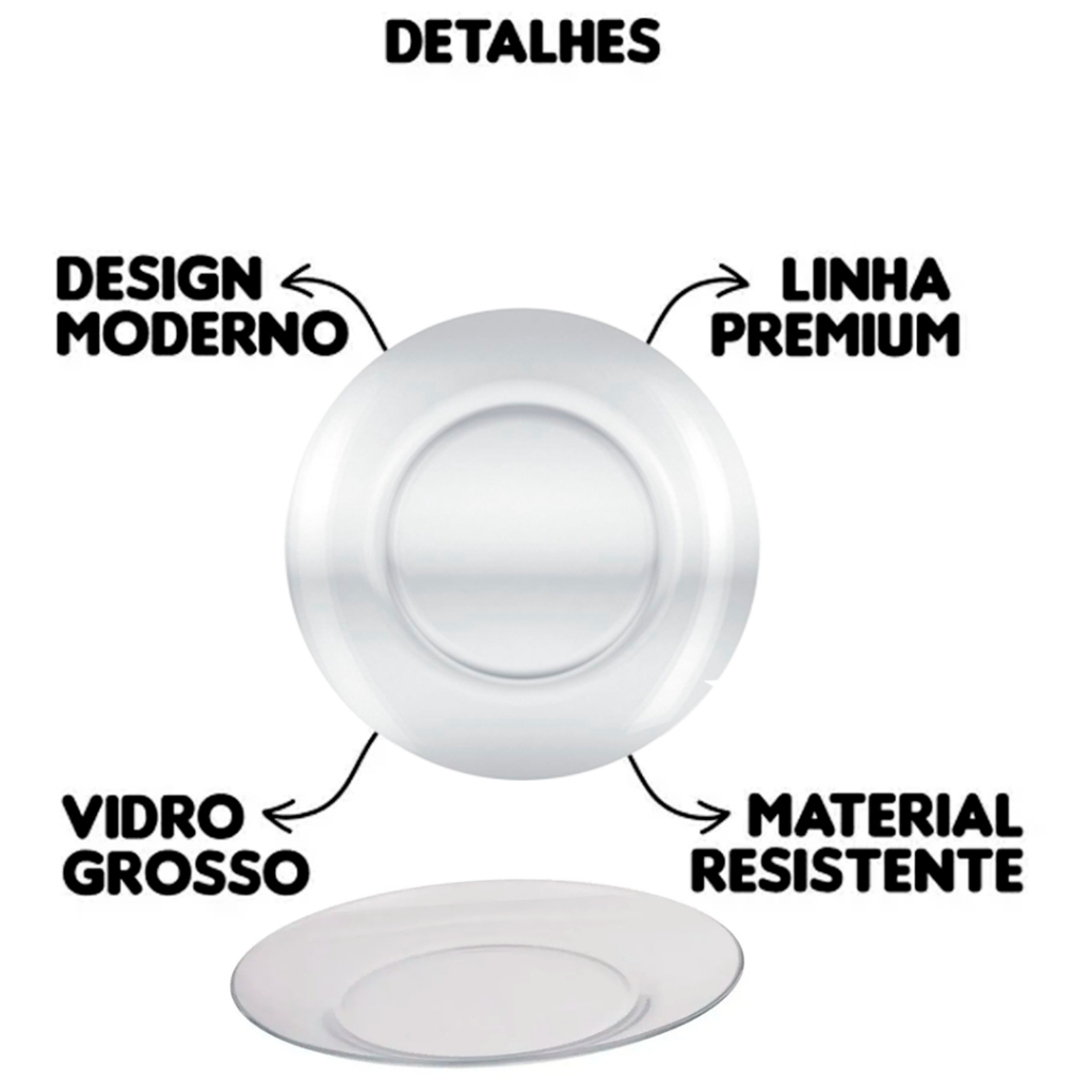 | Jogo 04/06/12 Pratos Sobremesa Astral Duralex Conjunto Vidro Transp... este produto | R$ 44,90 | 36% | 4.9/5 | — |