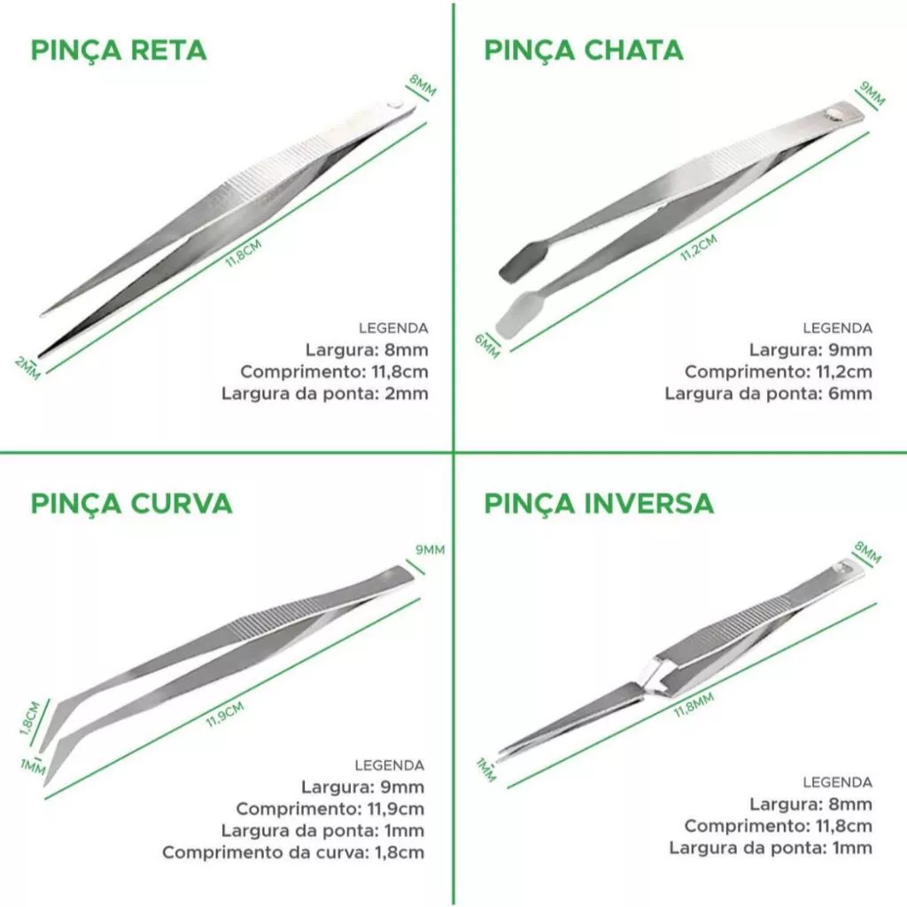 Kit com 4 Pinças de Precisão – Ideal para Eletrônica, Costura, Artesanato, Fuxico e Trabalhos Delicados Otimize seus projetos com este kit de pinças de precisão, ideal para quem trabalha com pequenos componentes e precisa de máximo controle em tarefas delicadas. Ferramentas versáteis, resistentes e essenciais para eletrônica, costura fina, fuxico, montagem de bijuterias e muito mais. Seja para consertar celulares, remover peças de placas, posicionar pedrarias ou costurar detalhes, esse conjunto oferece precisão e conforto em qualquer aplicação. 🔍 O que vem no kit: ✔ 1 Pinça Reta – ideal para uso geral ✔ 1 Pinça Curva – perfeita para ângulos difíceis ✔ 1 Pinça Chata – segura peças maiores com firmeza ✔ 1 Pinça Inversa (autoajustável) – prende sozinha, ideal para montagem e colagens 📐 Especificações Técnicas: • Material: Aço carbono resistente com revestimento em PVC • Acabamento com ranhuras para melhor pegada e segurança • Superfície antiderrapante, leve e confortável para uso prolongado 💡 Aplicações recomendadas: ✅ Ferramenta para eletrônica e manutenção de placas ✅ Conserto de celular e relógio ✅ Costura artesanal, fuxico e patchwork ✅ Pinça para bijuterias e montagem de acessórios pequenos ✅ Ideal também para uso escolar, profissional ou DIY 📦 Conteúdo: 1 Kit com 4 Pinças de Precisão