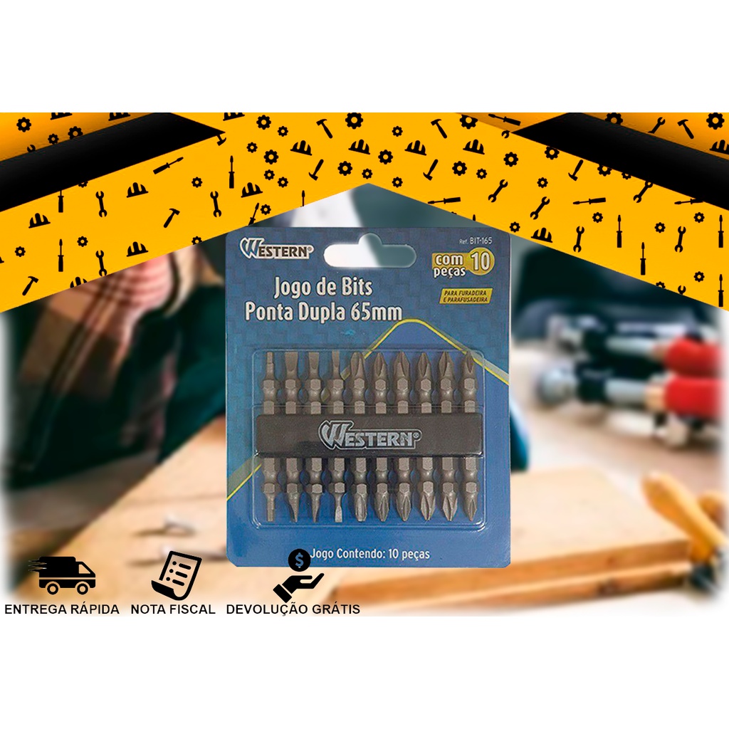 Jogo 10 bits Ponta Dupla 65mm vanádio Western