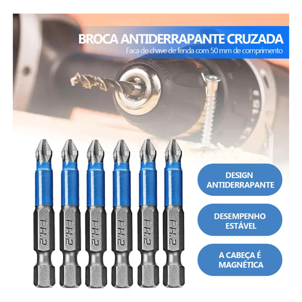 Jogo 10 Bits Ponteira Phillips Imantada Furadeira Parafusadeira Antiderrapante