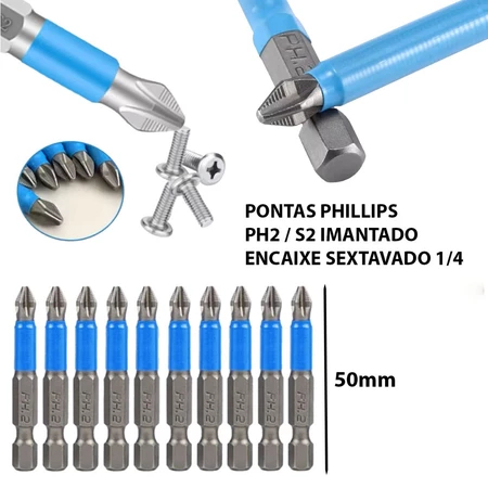 Jogo 10 Bits Ponteira Phillips Imantada Furadeira Parafusadeira Antiderrapante