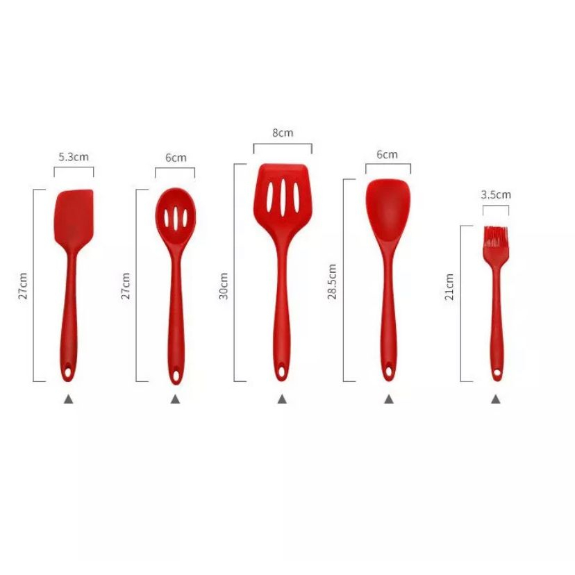 Jogo 10 Colheres De Silicone Cabo Inox Utensílios Cozinha. Quantidade: 10 unidades. Composição: Silicone e cabo de inox. Contém: 1 Escumadeira Silicone Dimensões: 34x9,5Cm 1 Pegador de Massas Silicone Dimensões: 32,5x6Cm 2 Colheres Silicone Dimensões: 33,5 x 7 cm 1 Concha Silicone Dimensões: 36,5x8Cm 1 Espátula Silicone Dimensões: 36,5x7,8Cm 1 Pegador Aço Inox e Silicone Dimensões: 27Cm 1 Batedor Silicone Cabo Aço Inox Dimensões: 25,5Cm 1 Pincel de Silicone. 1 Espátula de Silicone.