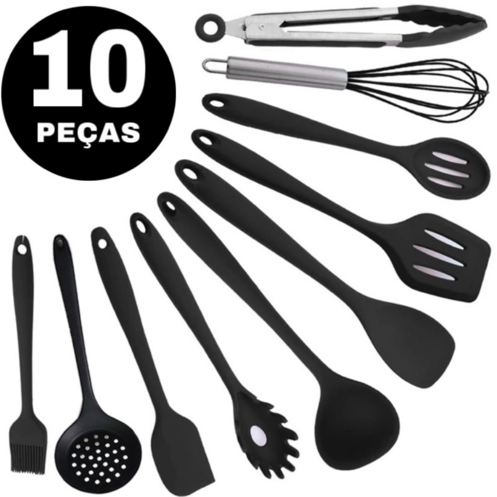 Jogo 10 Colheres De Silicone Inox Utensílios Cozinha