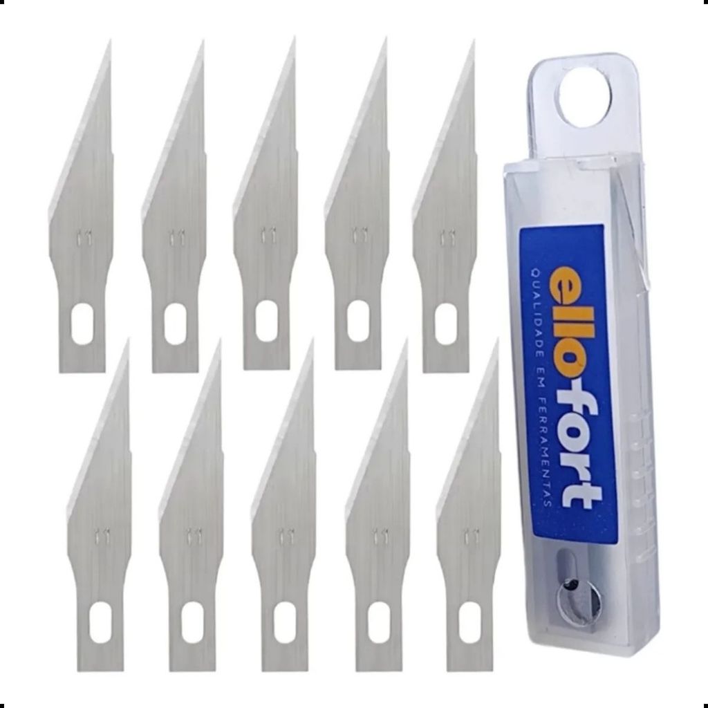 Jogo 10 Laminas Estilete Precisão Bisturi P/ Artesanato Aeromodelismo Corte Nº11 Kst Ellofort